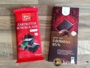 Ist meist vegan, auch bei den Discountern! Einfach einen Blick auf die Zutatenliste werfen und schon weißt Du Bescheid! Manche dunklen Kuvertüren sind übrigens auch vegan, geschmacklich bleibt sich beides fast gleich.