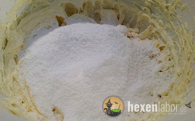 In diesem Fall muss die Butter Zimmertemperatur haben. Wiege zuerst Deine Zutaten ab, den Puderzucker, das Mehl und das Backpulver solltest Du in diesem Fall sieben.