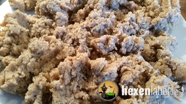 Es sollen Streusel und kein Teig entstehen! Stelle die Streusel dann kühl, am besten in den Kühlschrank. Dafür kannst Du sie auf einen Teller umfüllen und abdecken, dann können sie besser durch kühlen.