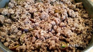 Bei diesem Kuchen habe ich sie mit Öl statt Margarine zubereitet, warum Öl grundsätzlich gesünder ist kannst Du weiter unten nachlesen. Einen Nachteil hat die Verwendung von Öl allerdings, die Streusel werden nicht ganz so fest und crunchy.
