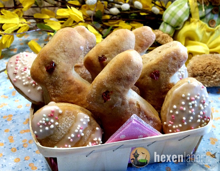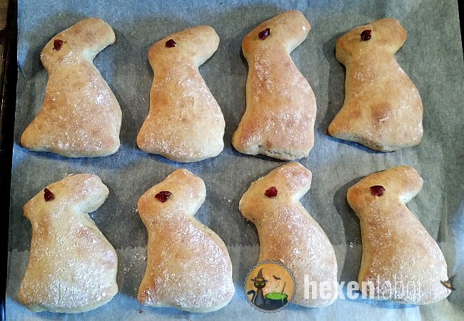 Manchmal dauert es etwas, bis die Hexe endlich dazu kommt das auszuprobieren, was schon lange auf der "muss ich unbedingt einmal machen"-Liste steht! So war es auch mit diesem Rezept, schnelle Osterhasen aus veganem Quark-Öl-Teig! Da die Zeit, besonders vor solchen Festtagen wie Ostern, oder auch Weihnachten ganz besonders schnell vorbei geht, habe ich das Rezept für Euch gleich in diesen Beitrag gepackt. Zubereitet ist der Teig genauso schnell, wie der traditionelle Quark-Öl-Teig, die Häschen sind sogar noch gleichmäßiger aufgegangen wie die, aus herkömmlichen Teig. Was ich am diesem Teig besonders mag ist die Tatsache, dass er nicht so arg süß, wie manche andere Teige ist. Anscheinend fanden das auch die anderen Bewohner des Hexenhauses, denn die Osterhasen und Eier sind heute schon alle wie von Zauberhand verschwunden 😉 !
