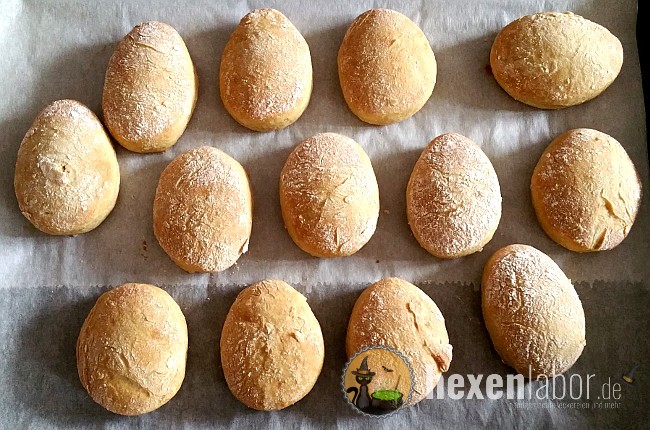 Die Backzeit beträgt zirka 10-15 Minuten (je nach Dicke) bei 180°C Ober-/Unterhitze und vorgeheiztem Backofen auf 200°C Ober-/Unterhitze.