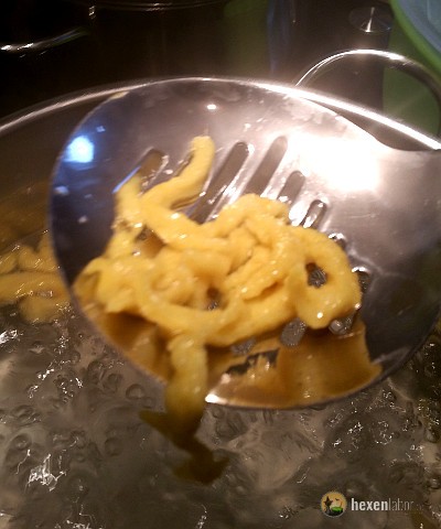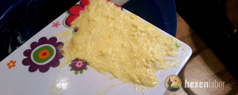 Die Hexe war mal wieder im Testmodus und hat auch die vegane Variante der Spätzle ausprobiert. Ich bin ganz ehrlich, vegane Spätzle hatte ich vorher noch nicht zubereitet. Da ich recht unsicher war, ob das Ergebnis nicht recht farblos wäre, habe ich Messerspitze Safran zugegeben. Die veganen Spätzle waren dann "gelber" als die herkömmlichen. Ebenfalls witzig war, das mein großes Kind, das normalerweise so gar nichts mit veganen Speisen am Hut hat, fast alles allein verputzt hat 😉 .