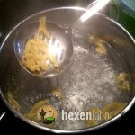 Setzt in der Zwischenzeit ein großen Topf mit Wasser auf und salze es leicht. Erhitze es, bis es sprudelnd kocht.