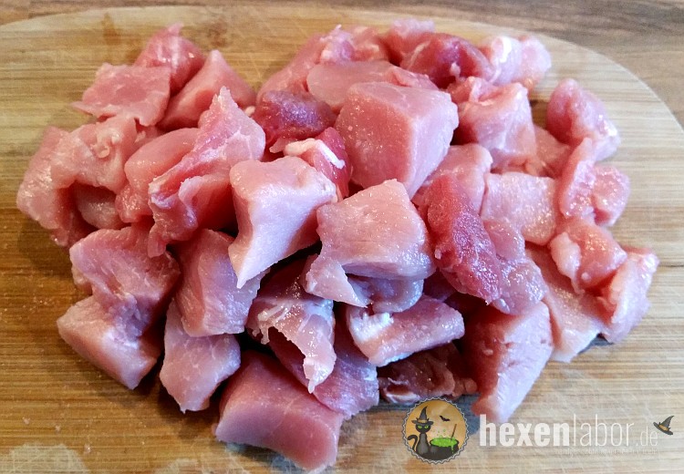 Wie man an den Beiträgen des Hexenlabor Blogs erkennen kann, gibt es bei uns nur noch selten Fleisch. Wenn es dann aber in den Topf und somit später auf den Tisch kommt, halte ich die Zubereitung von Klassikern aus meinen Kindertagen fest und fasse sie für Euch in Wort und Bild. Dieses mal gab es Szegediner Gulasch, es wurde in meiner Familie traditionell meist mit Salzkartoffeln, aber auch mit Serviettenklsoß serviert. Die kleinste Nachwuchshexe kannte das Gericht noch gar nicht, aber mochte es sehr gerne. Ich war sehr erstaunt, da sie eigentlich keine Sauer- oder Blaukraut kraut mag. In der Kombination mit Gulasch und Tomatenmark war es dann aber wohl sehr lecker 😉 !